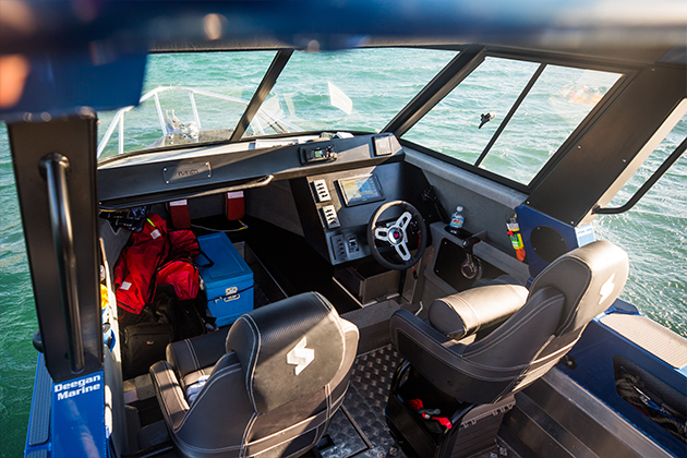 The helm and passenger seat is arguably the most used features on any vessel which is why the Elite Bolster seat comes standard on the 2100 Supercab. When standing, and the bolster in the ‘up’ position, you can comfortably cruise through any sea condition. When seated and the bolster in the ‘down’ position, your legs are well supported making longer adventures much more comfortable.