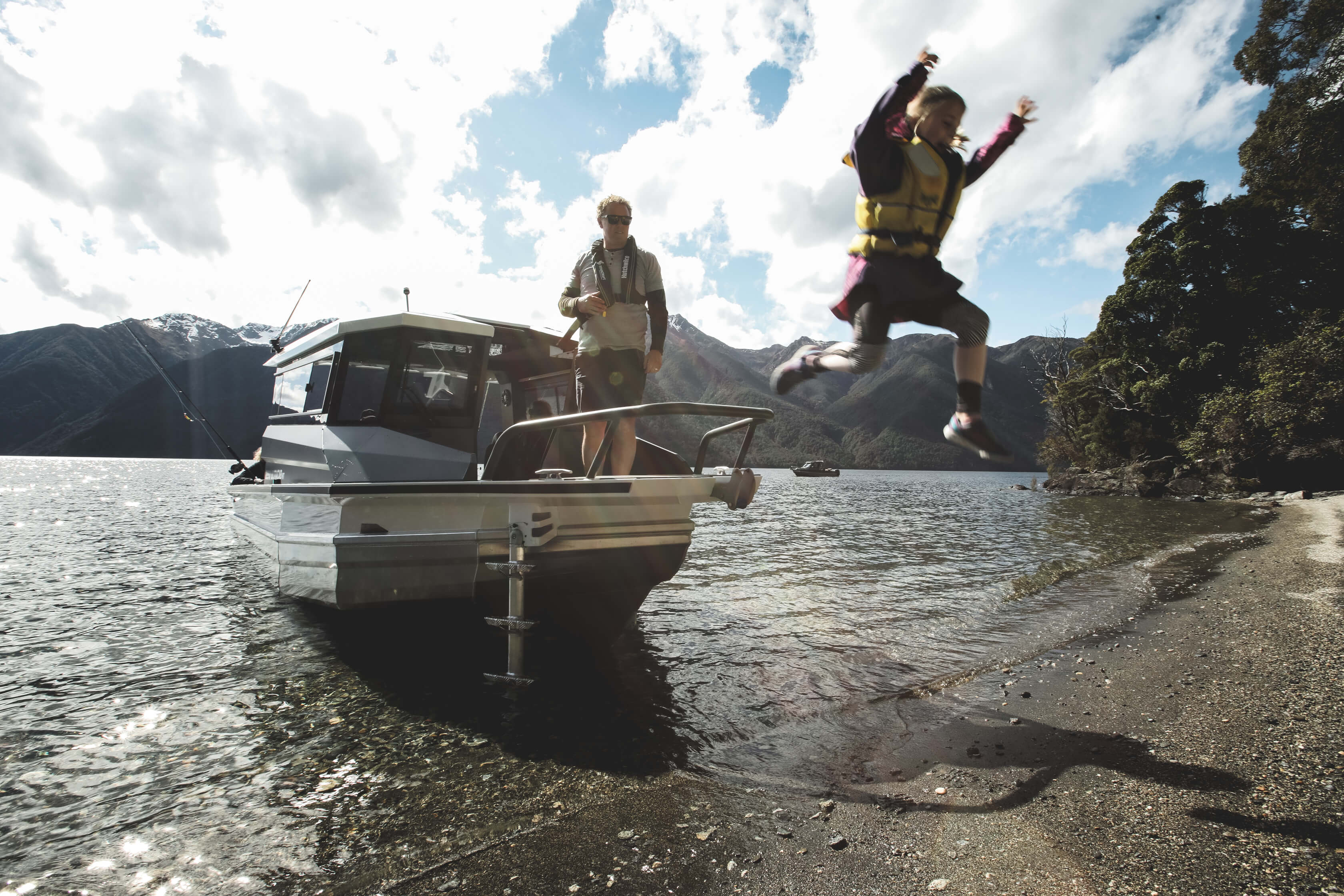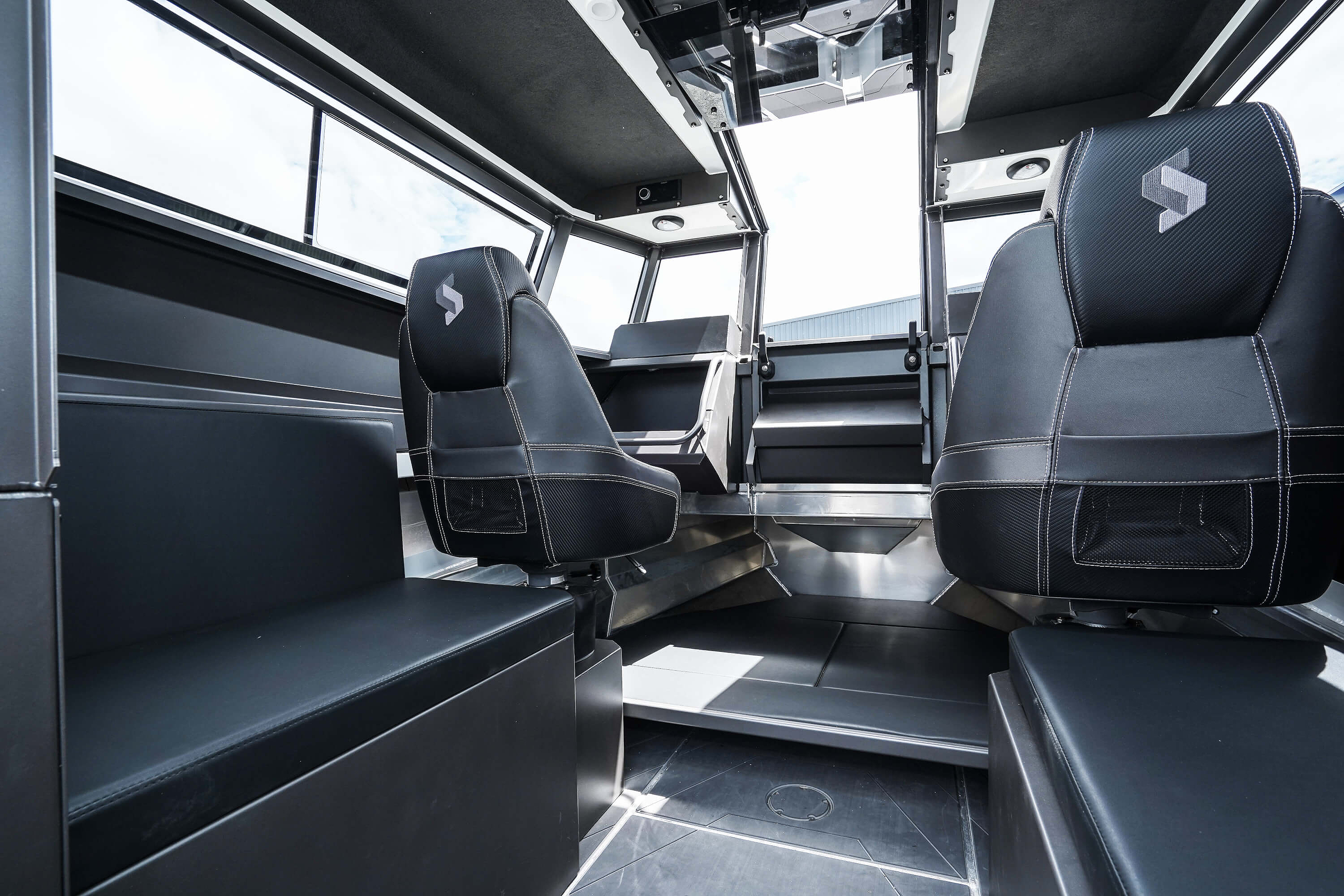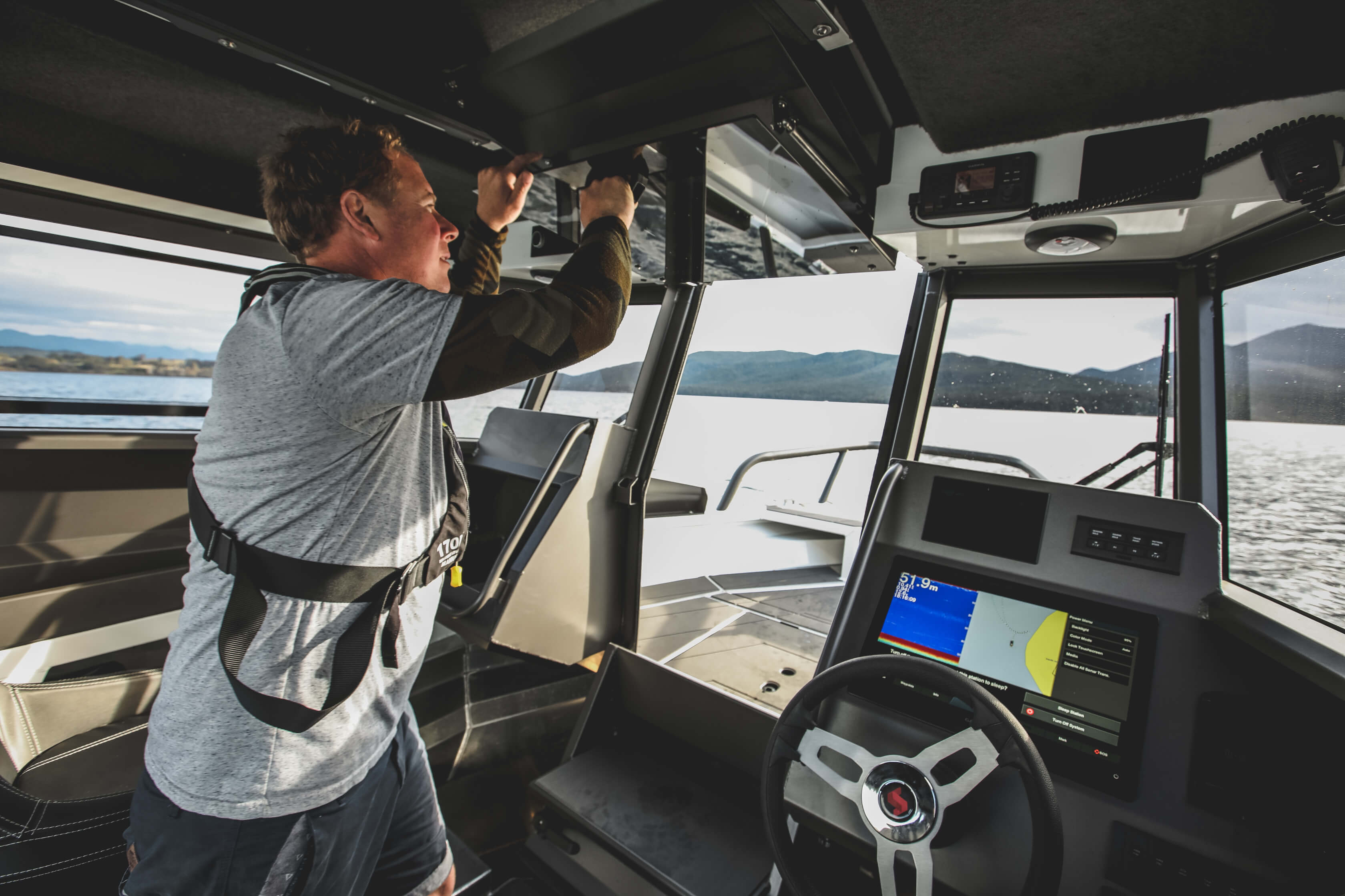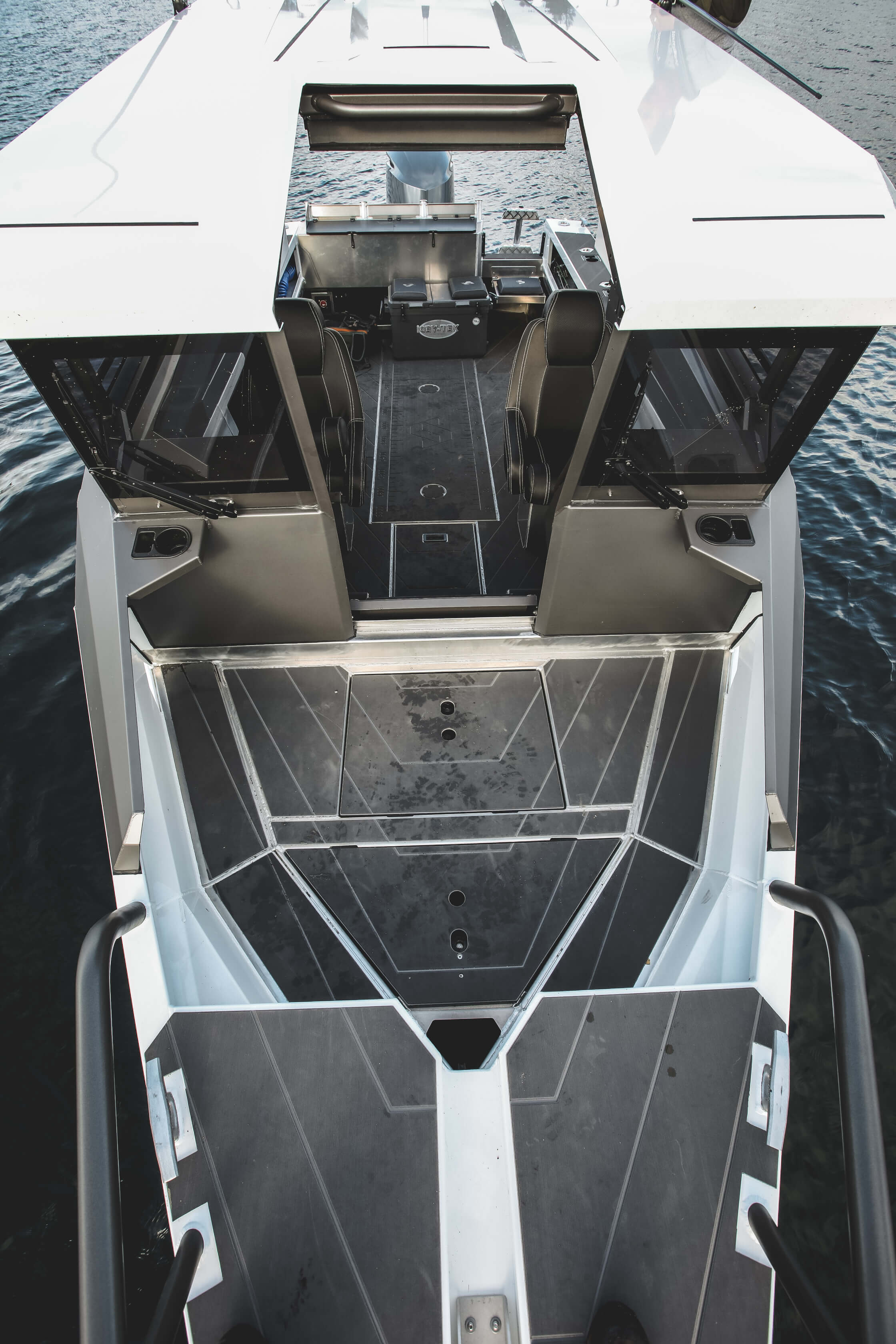 The 3 piece walk-thru door is an engineering masterclass. When closed the door seals tight against the super-structure of the cabin and is an easy 3-step operation to open to then lead out onto the bow deck area. This thoroughly tested door design and ergonomic headroom make access forward and aft a safe and easy operation.
