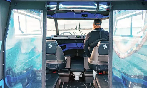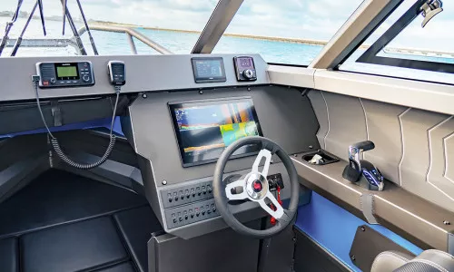 The 2350 Supercab debuts a new hull, which has been subjected to extensive hydrodynamic and on-water testing. Stabicraft has increased the keel angle and tapered the forward sealed chambers upwards, giving a finer entry. This has allowed the hull to better navigate rough water by dispersing the water further back under the hull, allowing a very dry ride.