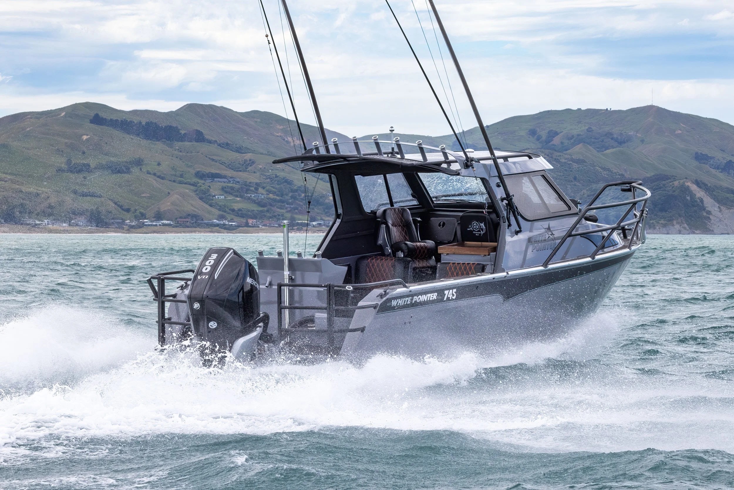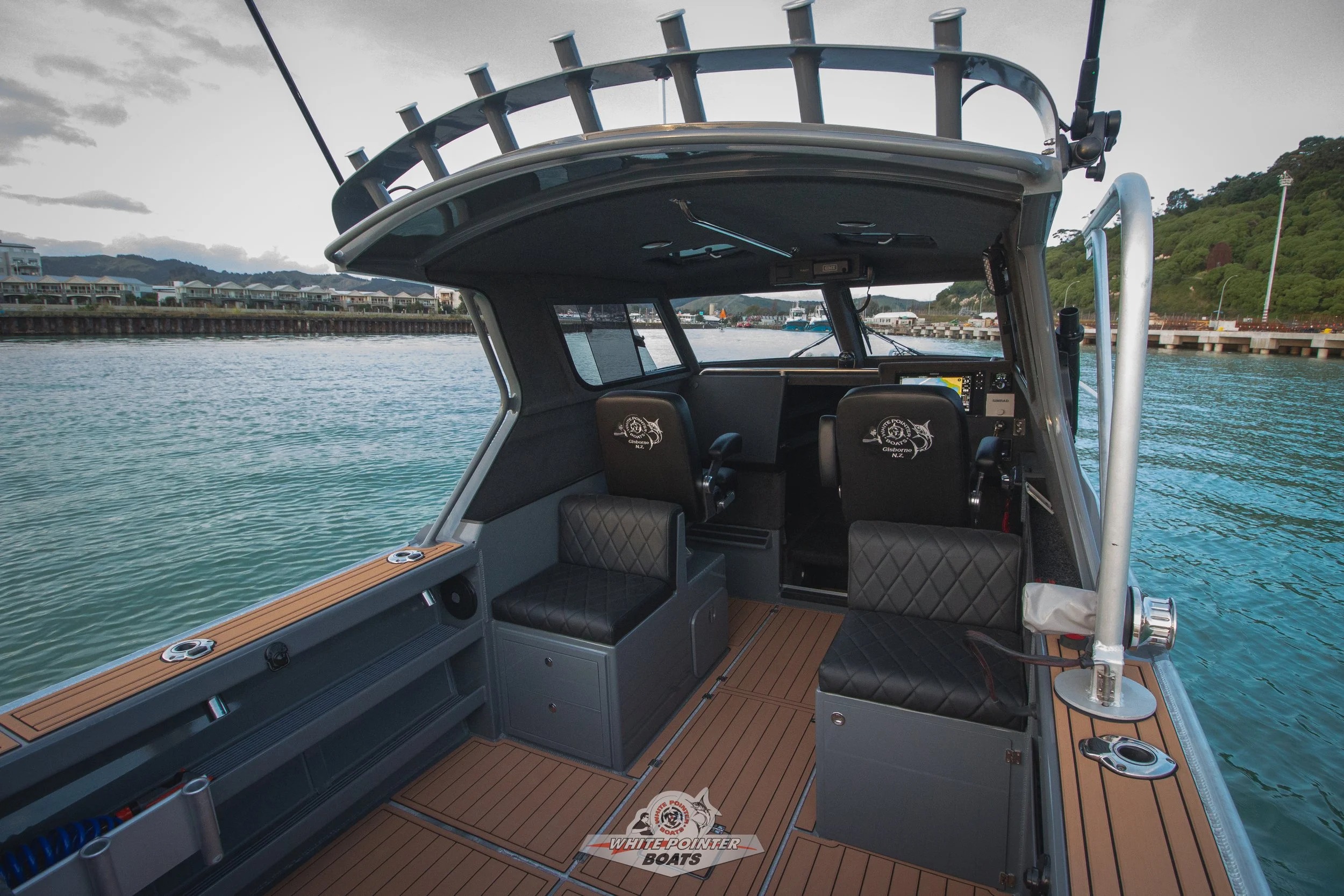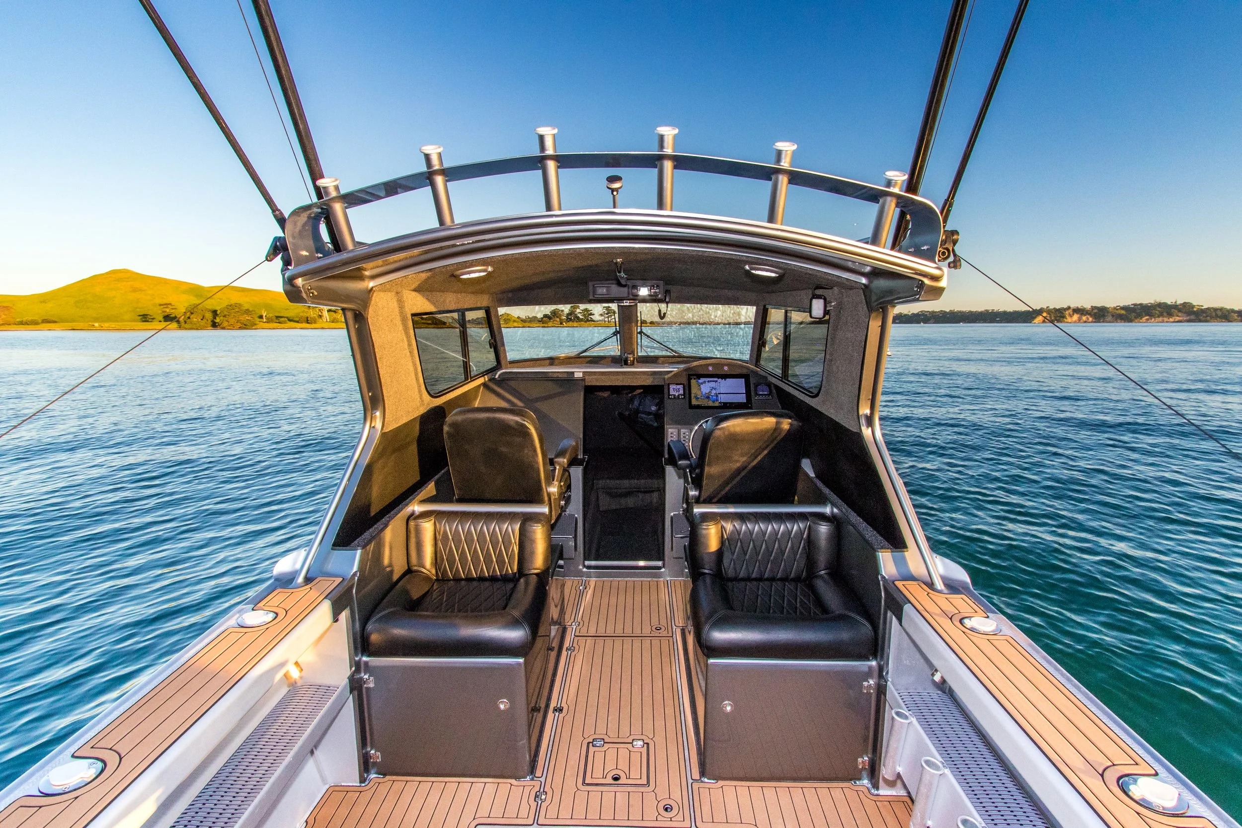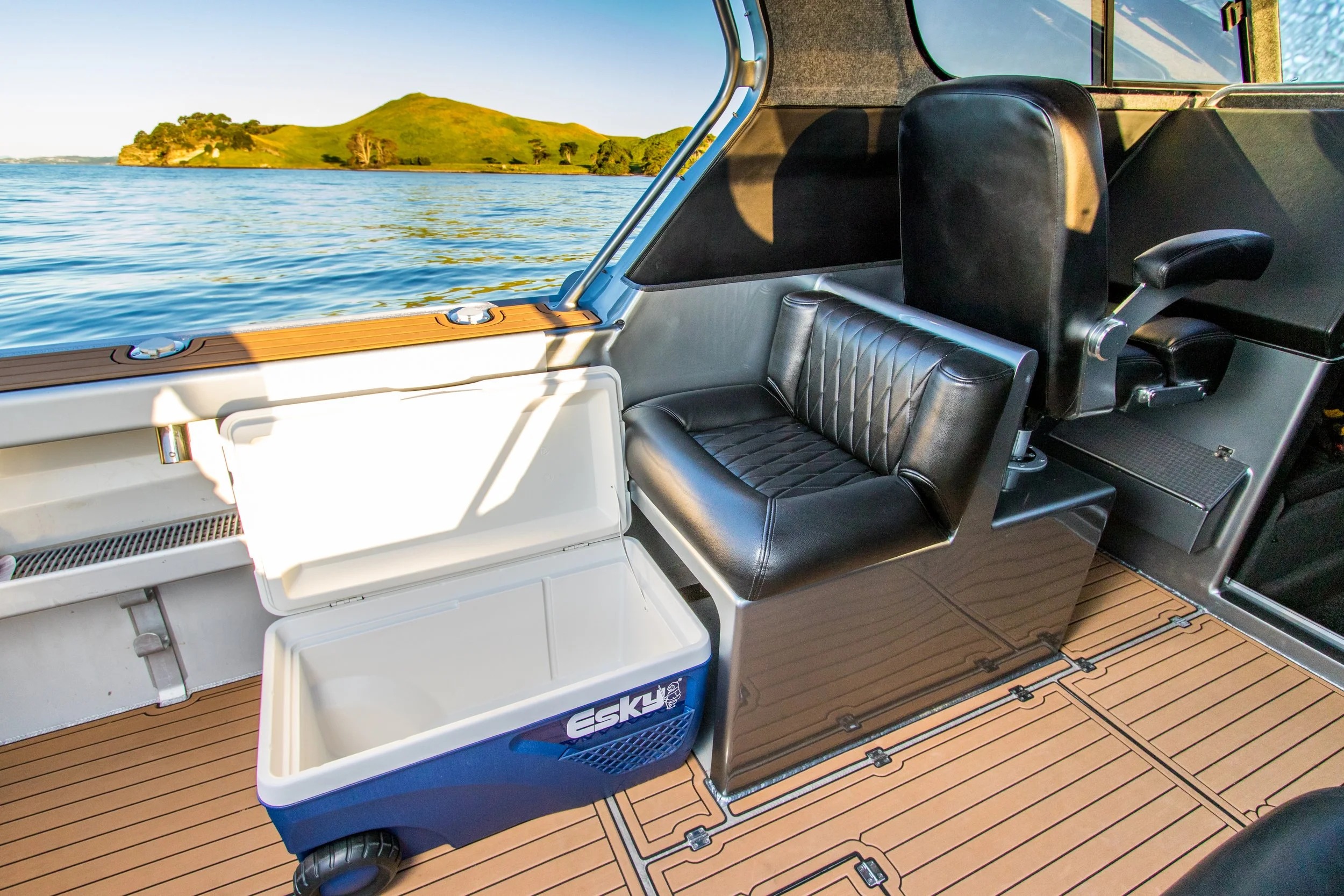 • Acid washed + Nyalic-coated cockpit, anchor well, bins, lockers, bow rails, under transom