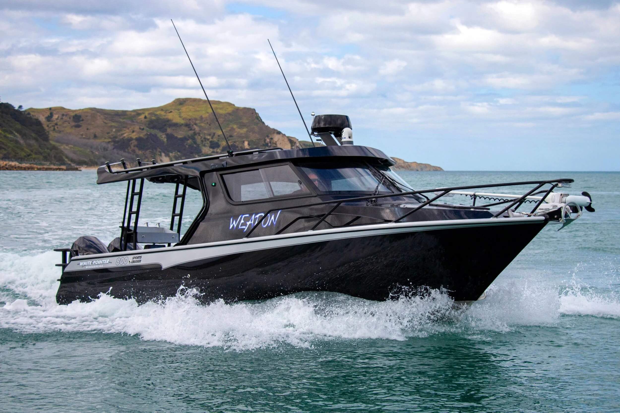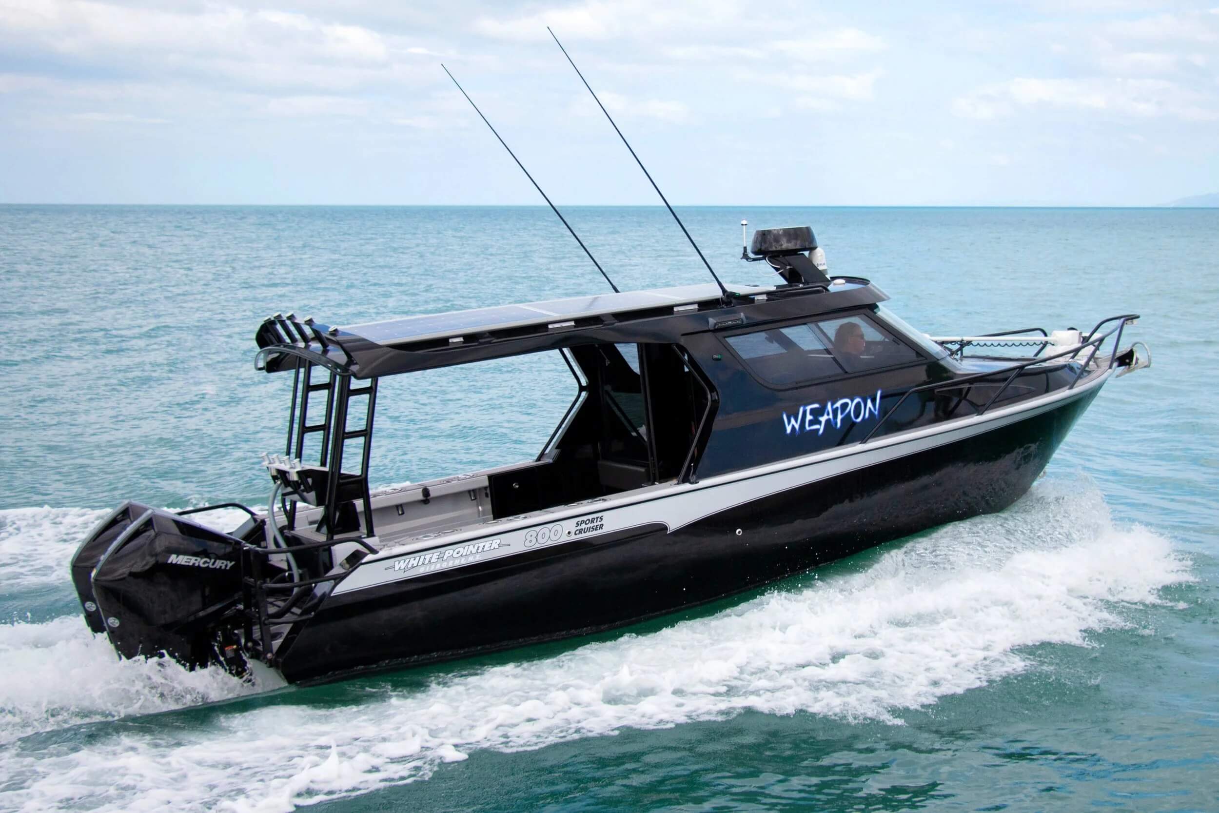 Painted hood, wheelhouse, hull sides, and transom